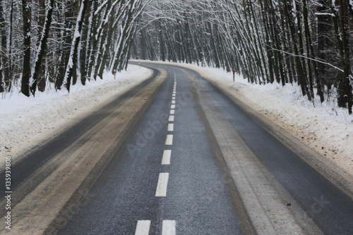 Fototapeta premium Asfaltowa droga zimą.
