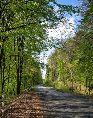 Fototapeta premium asfaltowa leśna droga na Roztoczu