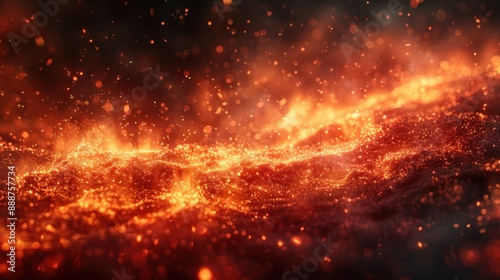 Fototapeta premium Ash and ember particles glowing against a dark background, creating a...