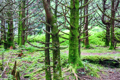 Naklejka premium Asheville NC Mountains Woods Green Moss on Trees Stumps