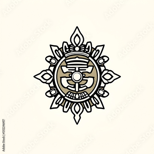 © Jessica, Naklejka premium Ashoka Charka Icon In Black Line Art.
