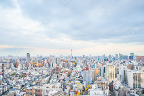 Fototapeta premium Asia business concept for real estate and corporate construction - panoramic modern city skyline aerial sunset view of bunkyo under fantasy pink sky and cloud, tokyo, Japan