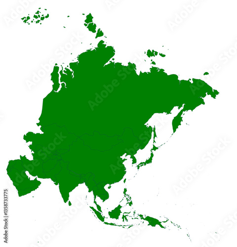 Fototapeta premium Asia Continent Green Map – Silhouette Illustration