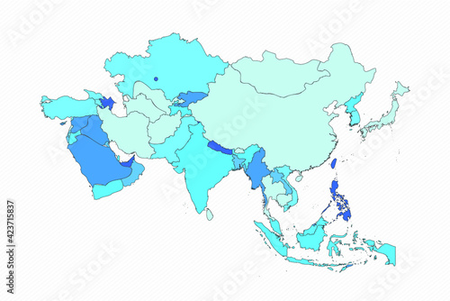 © Vectoro, Obraz premium Asia Divided Map With Countries