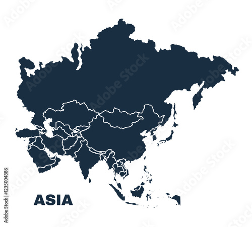 © Jayartiez, Obraz premium Asia map flat border outline vector