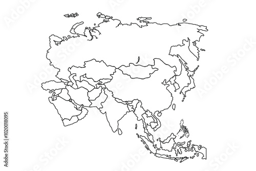 © K, Fototapeta premium Asia map outline isolated on white background. Asia map outline template. Asia map outline vector illustration. world map outline, linear doodle illustration