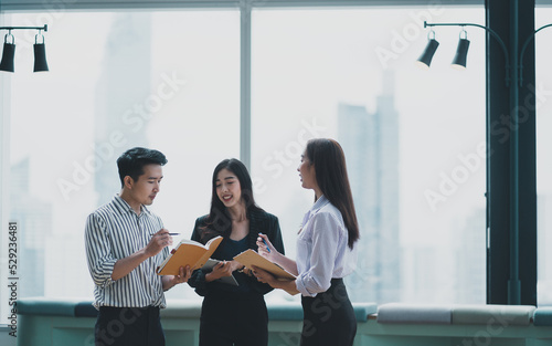 © Me studio, Obraz premium Asian adult Asian brainstorming business businessman.Colleagues from computer communication company.human lifestyle laptop online office meeting