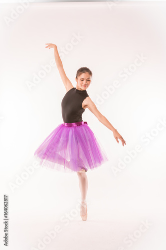 Naklejka premium Asian ballerina posing for studio photoshoot with white background