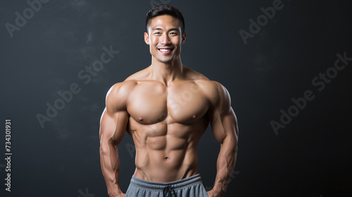 Fototapeta premium asian bodybuilder upper body smiling in the camera