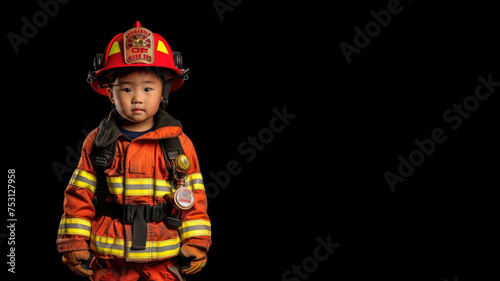 © d-AI-n, Fototapeta premium asian boy fireman isolated on black