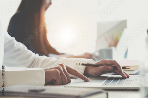 © wichayada, Fototapeta premium Asian Business People meeting Planning Strategy Analysis on new business project with laptop computer at modern office - Business Concept