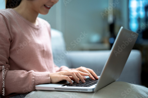 © Basicdog, Naklejka premium Asian business woman working at home.