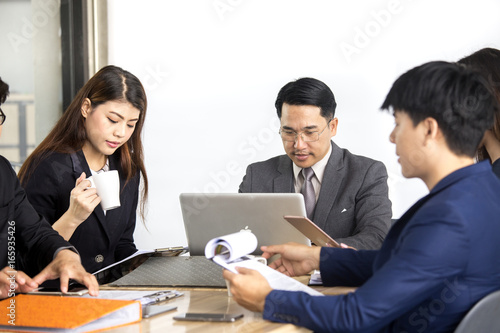 © Jestercine, Obraz premium Asian businessman working with team, business teamwork concept, 30-40 year old.