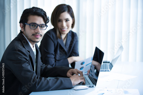 Fototapeta premium Asian businessmen are working in an office using a computer