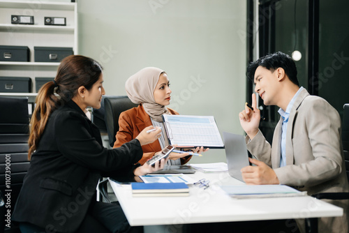 © Nuttapong punna, Fototapeta premium Asian businesspeople while collaborating on a new project. using a laptop and tablet