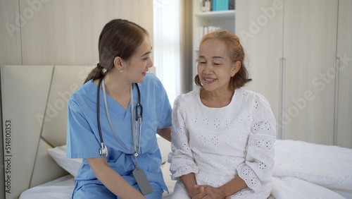 © DG PhotoStock, Fototapeta premium Asian doctor giving an advice and explaining to elder female patient with empathy.