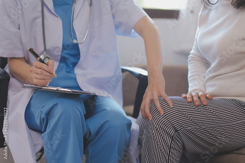 Fototapeta premium Asian doctor woman visited patient woman to diagnosis and check up health at...