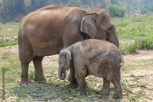 © Erica Ruth, Fototapeta premium asian elephant family in Thailand
