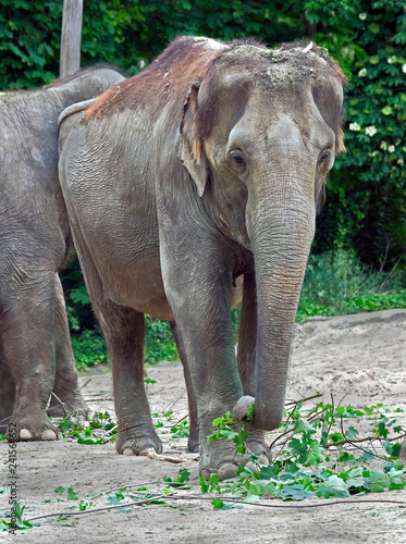 Fototapeta premium Asian elephant in its enclosure. Latin name - Elephas maximus