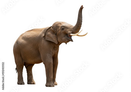 © Milon, Fototapeta premium Asian elephant with trunk raised isolated on white background