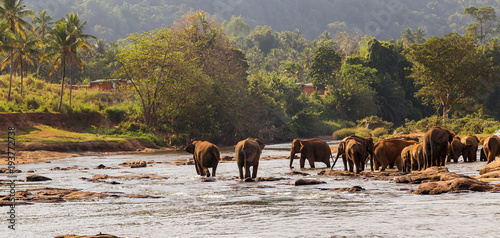 © Emoji Smileys People, Obraz premium Asian elephants swimming playing and bathing in river Sri Lanka