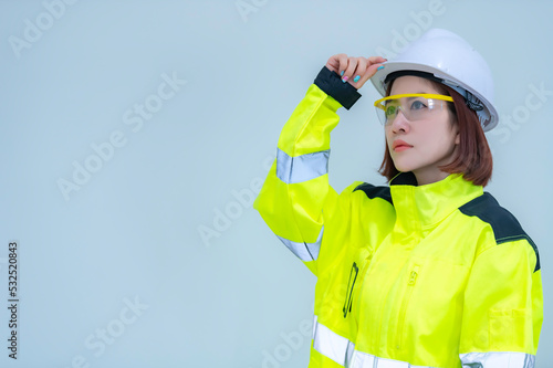 © reewungjunerr, Fototapeta premium Asian engineer woman on white background