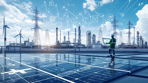 © AS Photo Family, Obraz premium Asian engineer working in futuristic smart city industrial landscape
