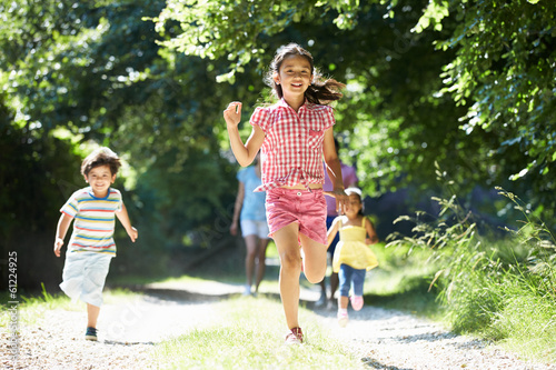 Fototapeta premium Asian Family Enjoying Walk In Countryside