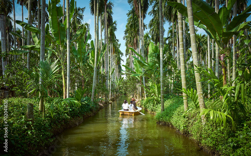 © jamesteohart, Fototapeta premium Asian family kayaking on the river in a beautiful place outside Bangkok