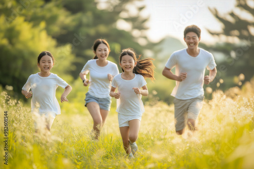 Fototapeta premium Asian Family Running Outside In The Morning
