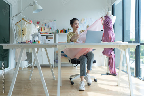 © Naypong Studio, Obraz premium Asian fashion designer working on new clothes collection