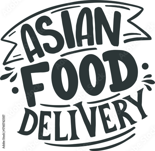 © WinWin, Obraz premium Asian food delivery hand lettering typography logo design