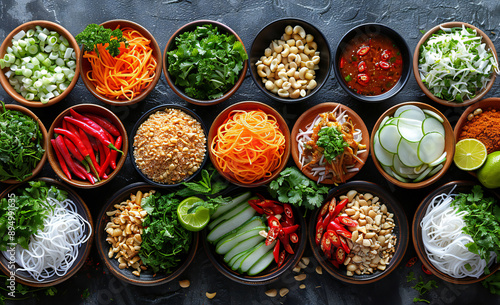 © nagulan, Fototapeta premium Asian Food Ingredients on Rustic Stone Background