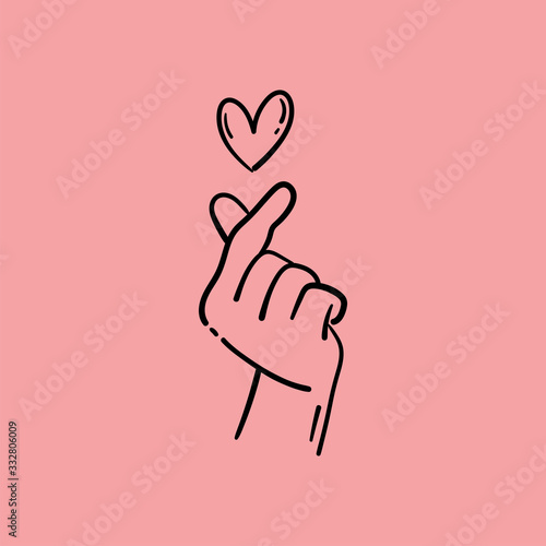 © Matias, Obraz premium Asian gesture of love. Fingers heart.
