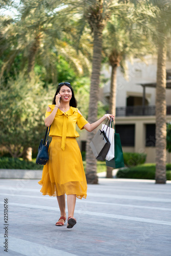 © creativefamily, Fototapeta premium Asian girl on the phone with shopping bags