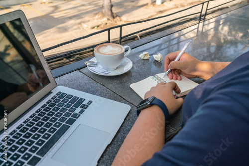 © Quang, Fototapeta premium Asian human hand holding pen and writing diary notebook