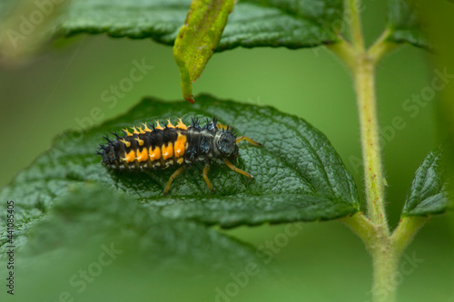 © duke2015, Naklejka premium Asian lady beetle larva on leaf in Niantic, Connecticut.