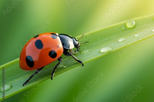 © Animal Lover, Obraz premium Asian Lady Beetle on Leaf Close-Up