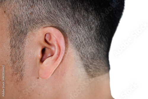 Obraz premium Asian male ears close-up on white background