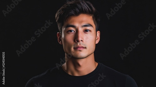 © The 2R Artificiality, Naklejka premium Asian man engaged in a virtual reality experience with a focused expression on a black background, showcasing modern technology and immersive entertainment.