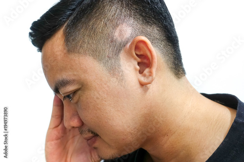 Obraz premium Asian men have stress when hair loss is a ring.