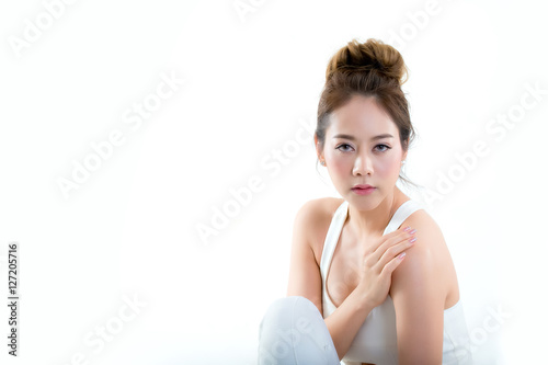 © Chaiphorn, Obraz premium Asian model portrait brunette woman isolated white background.