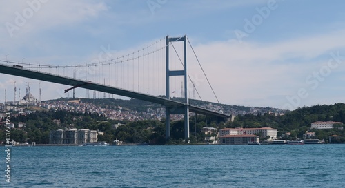 © thomasje, Naklejka premium Asian Part of Bosphorus Bridge and Strait, as seen from Ortakoy Mosque in Istanbul, Turkey