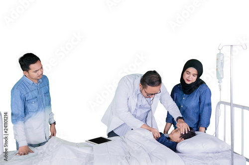 © Creativa Images, Obraz premium Asian pediatrician examining his patient on studio