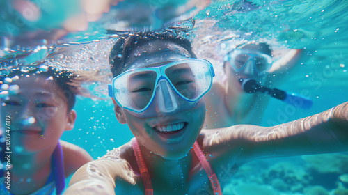 Naklejka premium Asian scuba divers