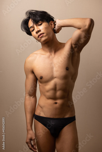 Fototapeta premium Asian sexy man model trong muscle in underwear