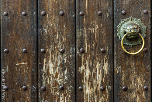 © Gabriel Cassan, Fototapeta premium Asian style antique solid wooden door with Knocker