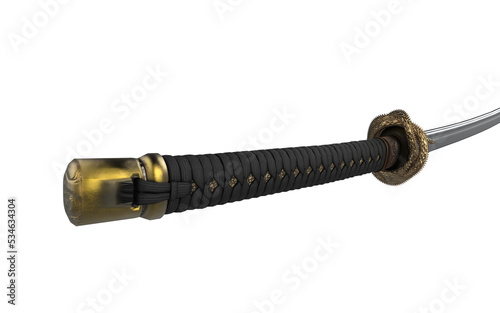 © Edit, Fototapeta premium Asian sword with gold dragon on handle on white background
