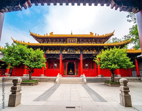 © Barokah, Fototapeta premium Asian temple facade, red and gold