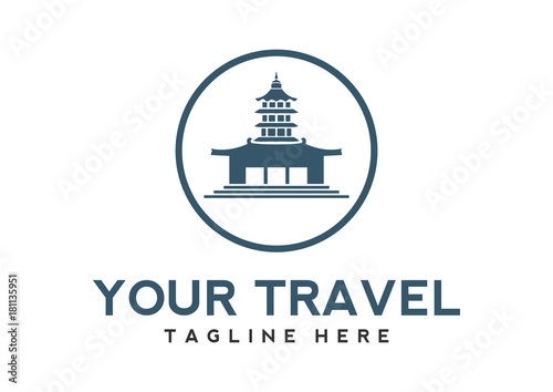© Vilogsign, Naklejka premium Asian Travel on Temple Building Illustration Logo Design